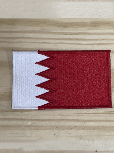 Emblema bordado com a bandeira de Bahrein, ideal para colecionadores, associações culturais, escolas e personalização de roupa ou equipamento.